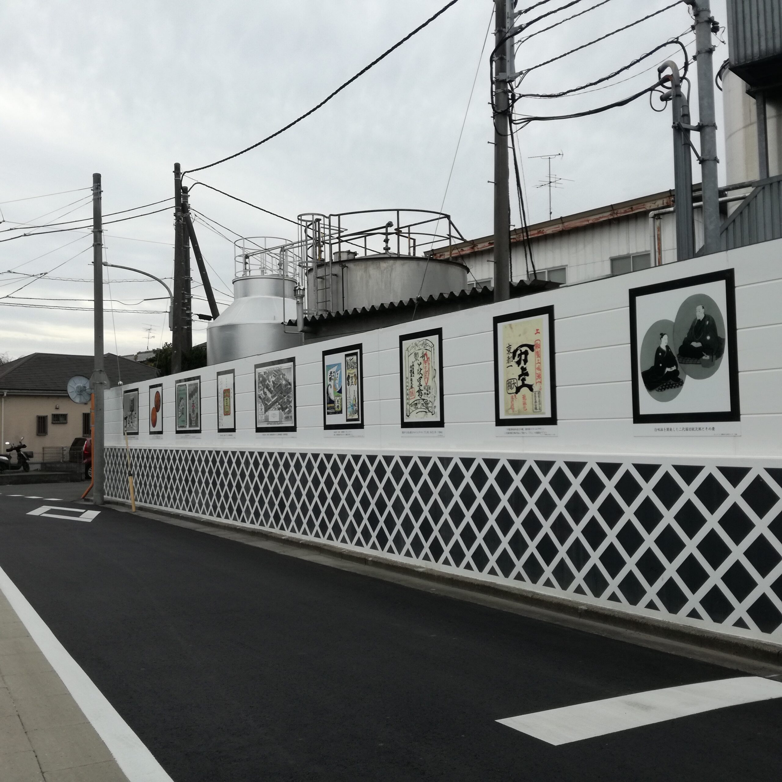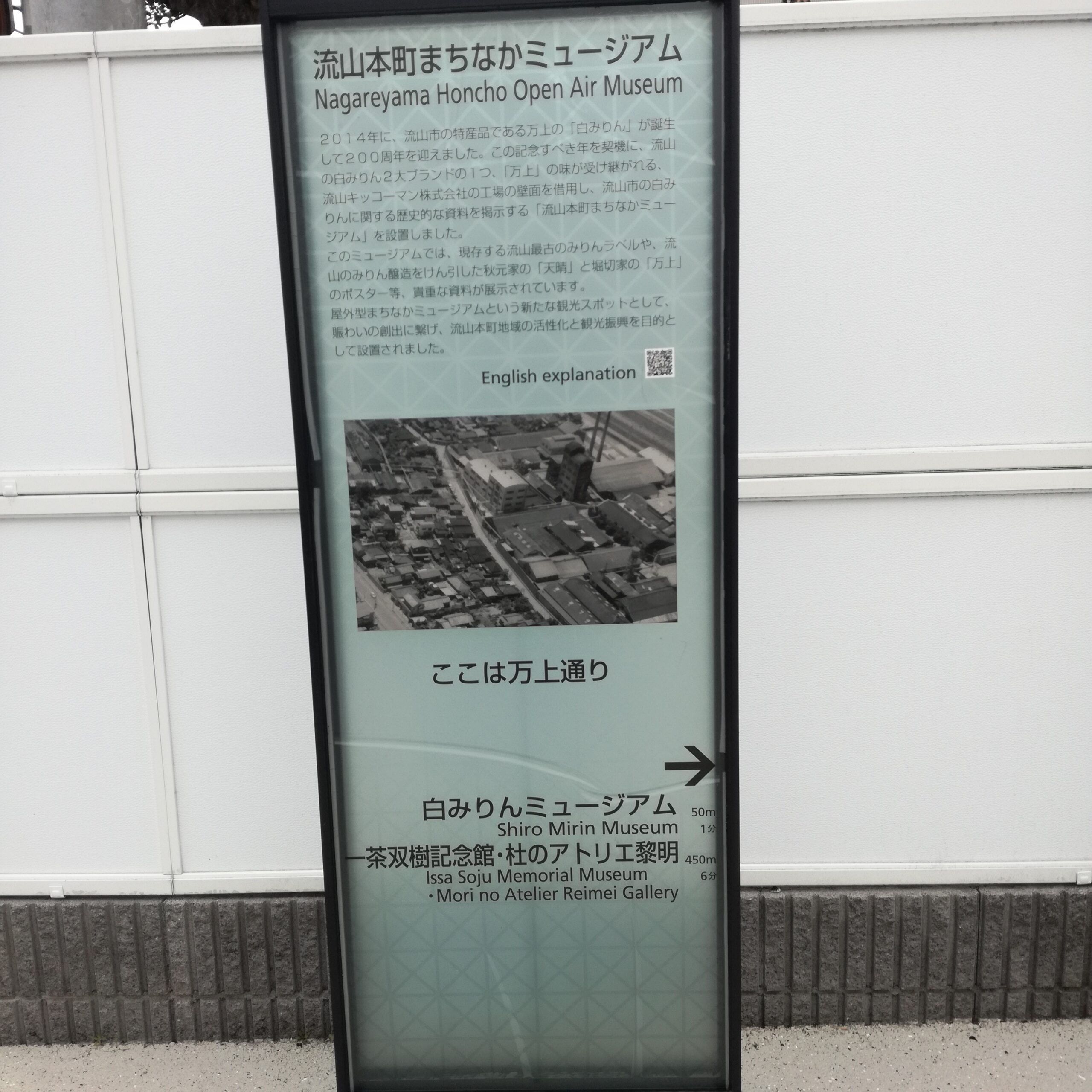 2014年に、流山市の特産品である万上の『白みりん』が誕生して200周年を迎えました。この記念すべき年を契機に、流山の2大ブランドの1つ「万上」の味が受け継がれる、流山キッコーマン株式会社の工場の壁面を借用し、流山し市の白みりんに関する歴史的な資料を提示する【流山本町まちなかミュージアム】を設置しました。